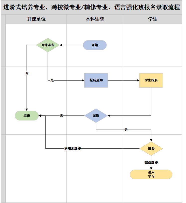 进阶式培养专业、微专业/辅修专业/跨校辅修专业、语言强化班报名录取流程