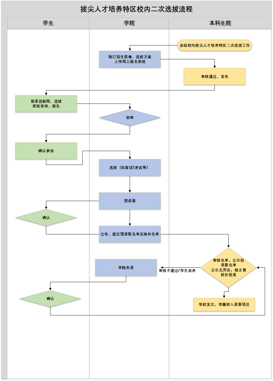 拔尖人才培养特区校内二次选拔流程