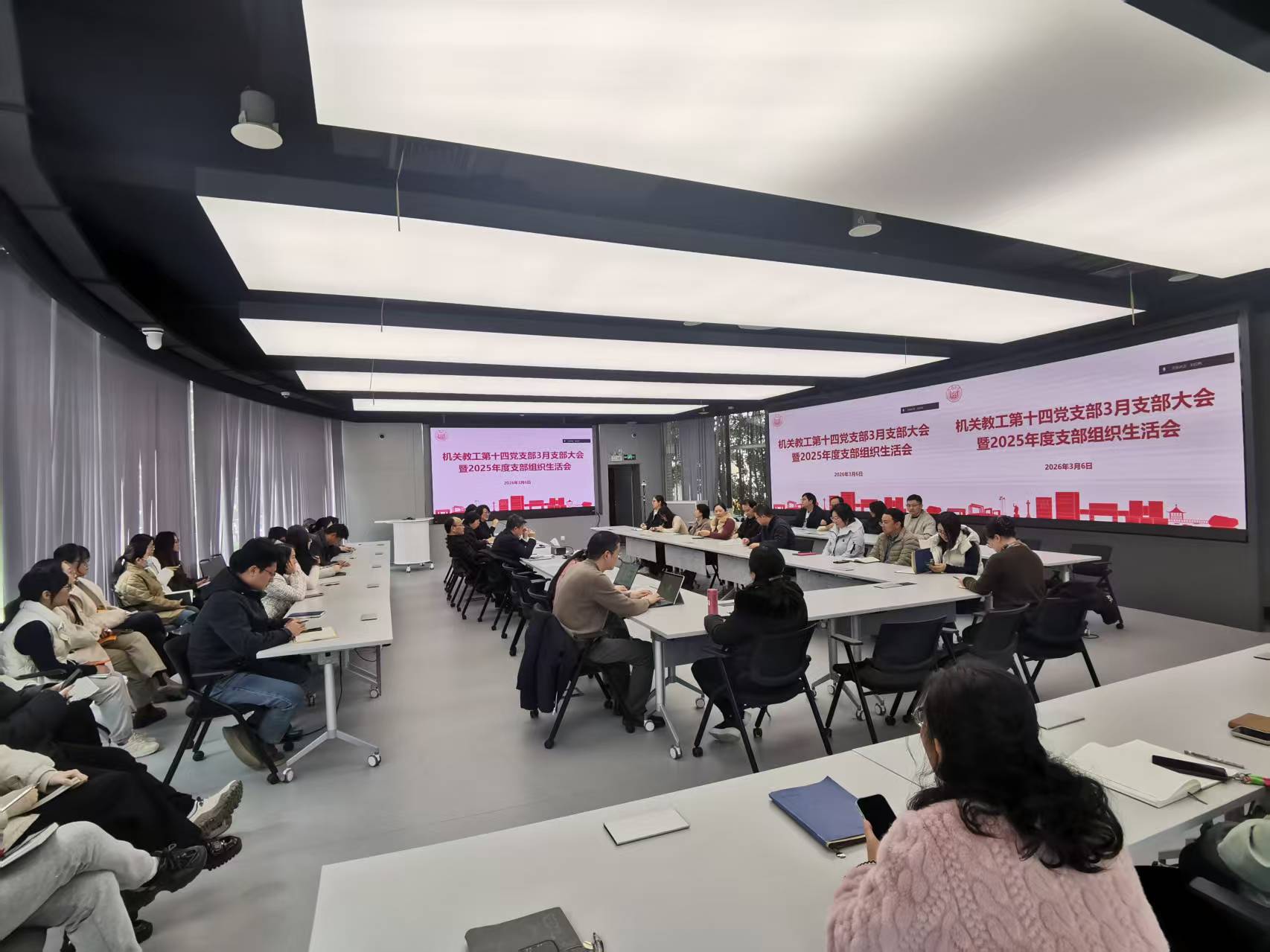 3月6日下午,同济大学机关教工第十四党支部在瑞安楼一楼报告厅召开3月支部大会暨2025年度支部组织生活会。本科生院、教学质量管理办公室非党员教职工列席会议。会议由支部副书记戴代红主持。
